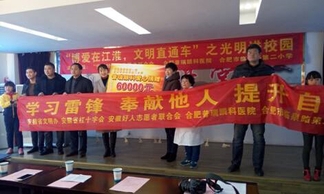 “我们第一站走进合肥市临二小是希望这里的孩子能够得到援助,让近视和患有眼疾的患者重拾光明,在学习上无后顾之忧。同时,也是在倡导奉献、友爱、互助、博爱精神,推广‘关爱社会、关爱自然、关爱他人’志愿服务理念。”“安徽好人”志愿者联合会会长王涛在活动现场表示。